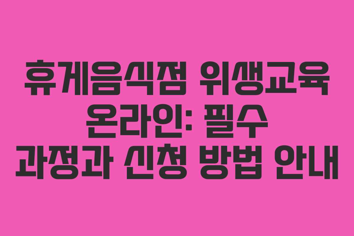 아래를 읽어보시면 온라인으로 이수하는 휴게음식점 위생교육의 핵심 내용, 신청 절차, 비용, 이수증 발급과 영업 신고 시 필요한 서류를 한꺼번에 확인할 수 있습니다.