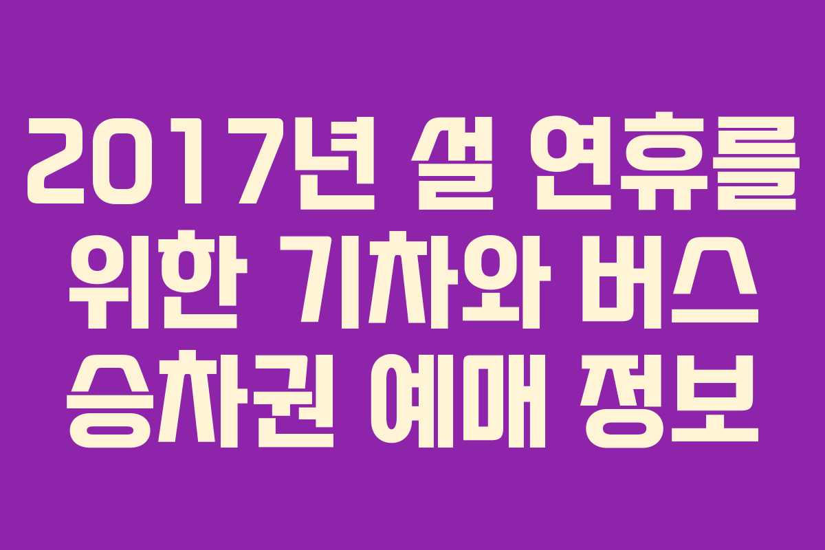 2017년 설 연휴가 다가오면서 많은 사람들이 기차와 버스 승차권 예매에 대한 정보를 찾고 있습니다. 이번 글에서는 기차와 버스 승차권의 예매 일정과 주의사항에 대해 자세히 다뤄보겠습니다. 각 교통수단에 대한 예매 방법과 필요한 정보들을 통해 효율적인 여행 준비를 할 수 있도록 돕겠습니다.