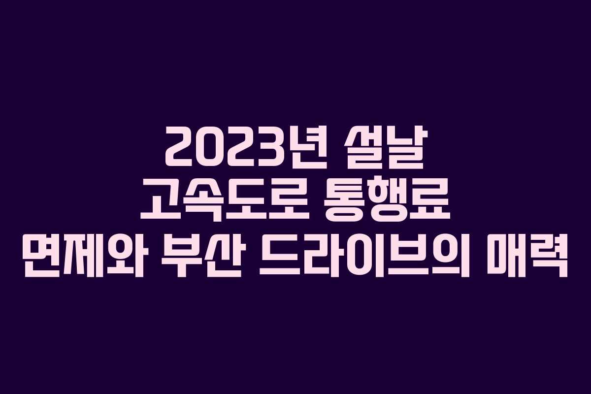 2023년 설날 연휴의 시작이 다가오고 있다. 이 시기에 고속도로 통행료가 면제된다는 소식은 많은 이들에게 반가운 소식이 아닐 수 없다. 특히, 1월 21일부터 24일까지 진행되는 통행료 면제 혜택은 가족과 함께 여행을 계획 중인 사람들에게 큰 도움이 될 것이다. 부산으로의 드라이브는 이 시기에 더욱 매력적인 선택이 될 것이다.