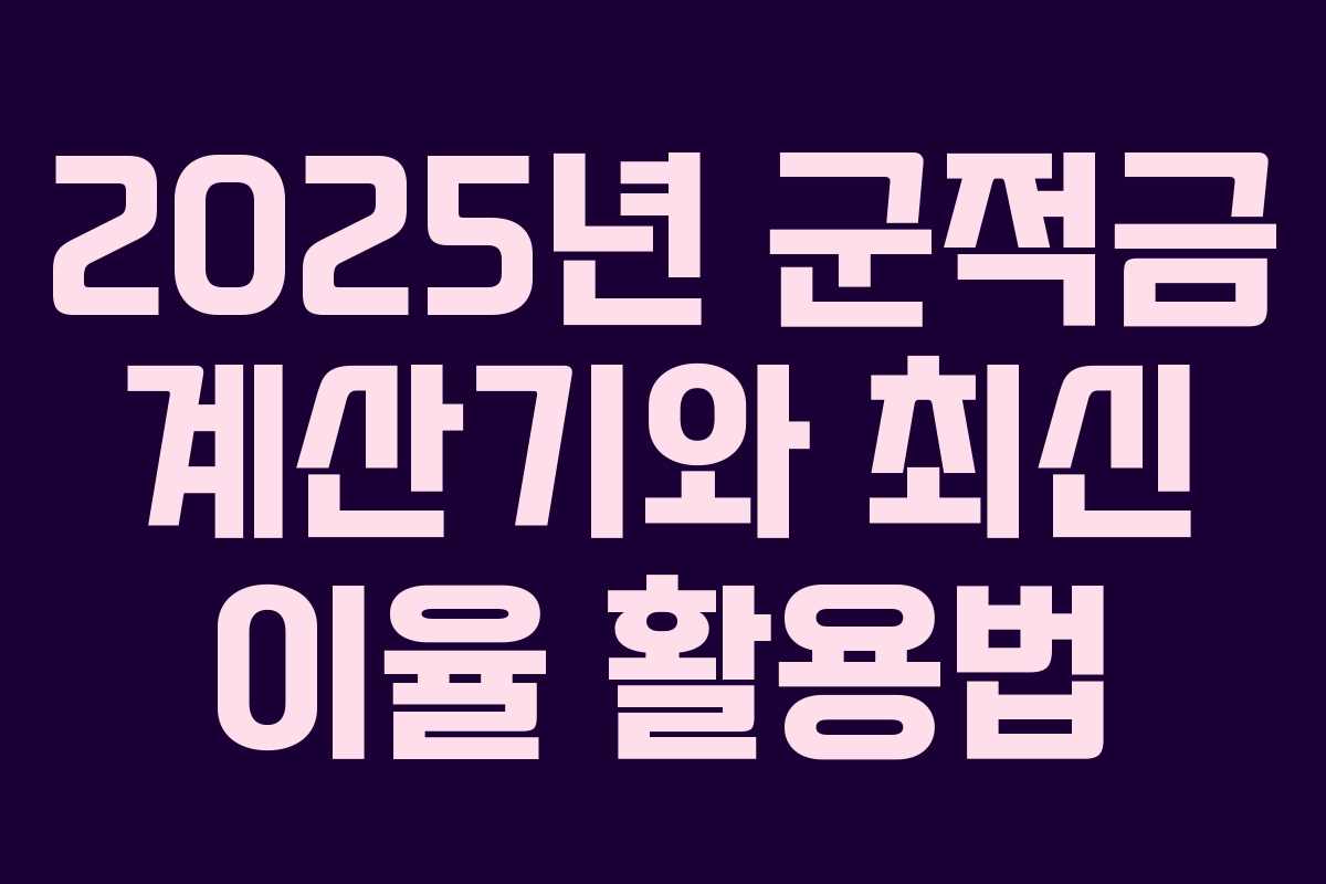 전역 후의 경제적 불안감을 덜어주기 위해 군적금에 대한 관심이 높아지고 있습니다. 군적금은 병역의무를 이행한 장병들이 전역 후 자립할 수 있도록 지원하는 금융상품으로, 이번 글에서는 최신 이율과 계산기 사용법, 가입 방법 등을 상세히 설명하겠습니다.