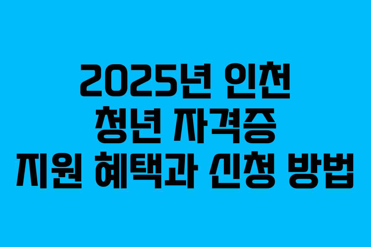 2025년 인천에서 청년들을 위한 자격증 응시료 지원 사업이 시행된다. 이 사업은 청년들이 자격증을 취득하는 데 소요되는 비용을 지원하여 취업 기회를 확대하는 데 목적이 있다. 지원을 받고자 하는 청년들은 이 글을 통해 자격 조건과 신청 방법을 확인할 수 있다.