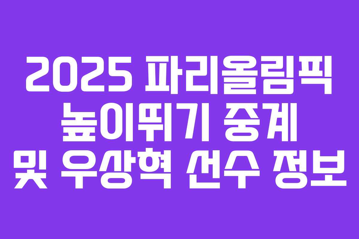 2025 파리올림픽 높이뛰기 중계 및 우상혁 선수 정보