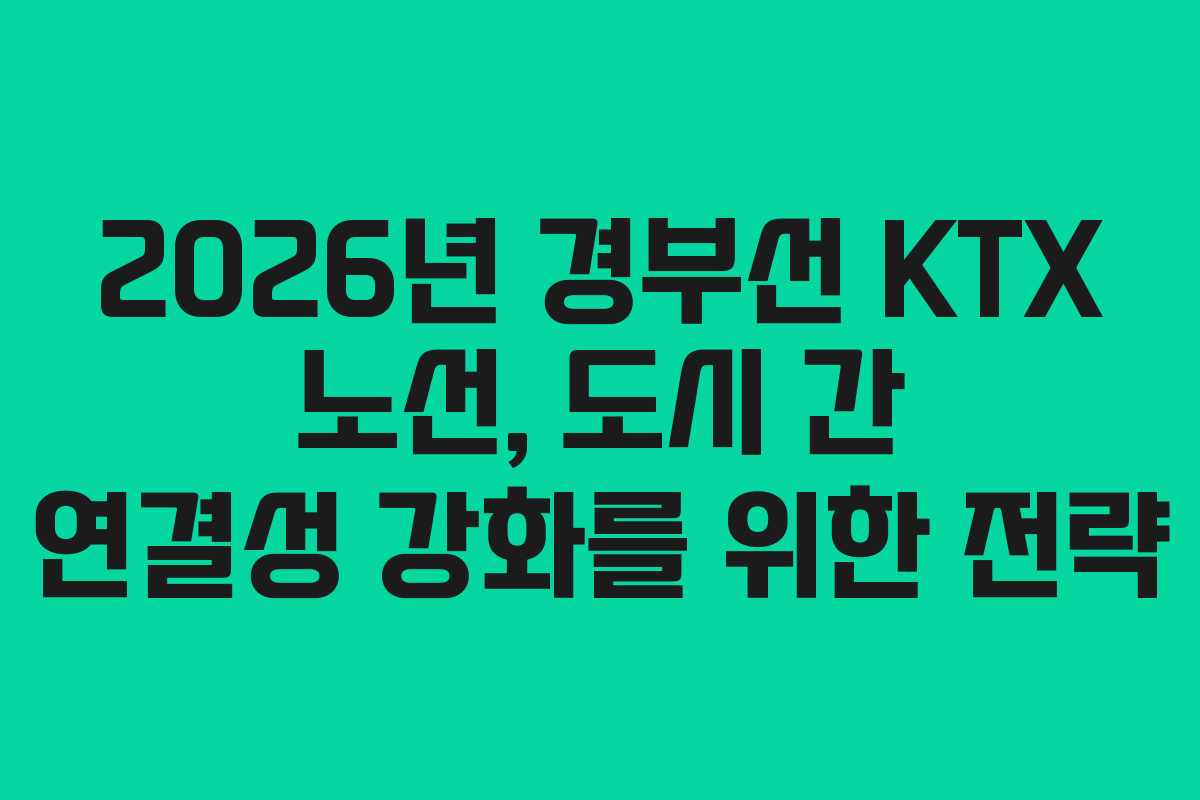 2026년 경부선 KTX 노선, 도시 간 연결성 강화를 위한 전략