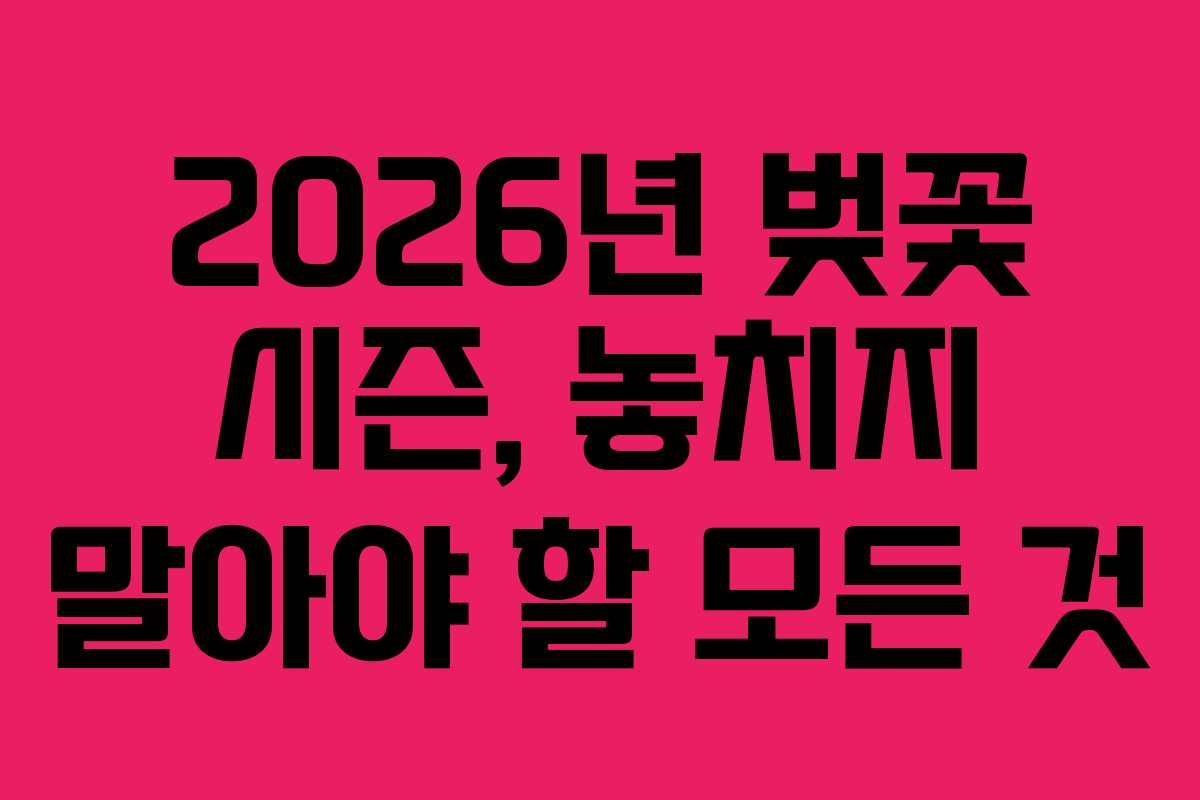 2026년 벚꽃 시즌이 다가오고 있습니다. 이 시기가 되면 전국 곳곳에서 벚꽃이 만개하여 아름다운 풍경을 연출합니다. 특히 서울, 부산, 제주도, 진해, 경주 등은 많은 사람들이 찾는 벚꽃 명소로 유명합니다. 이번 글에서는 2026년의 벚꽃 개화 시기와 여행지 추천, 필수 준비물 체크리스트 등을 종합적으로 안내하겠습니다.