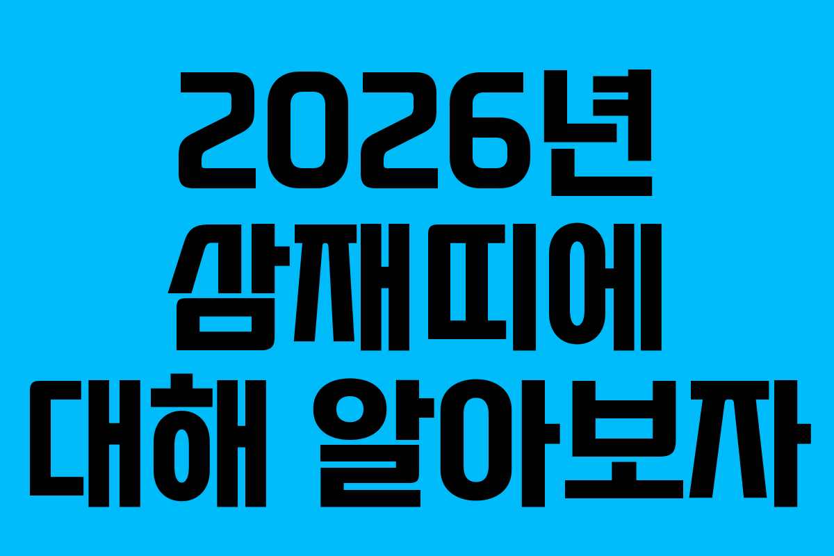 2026년은 돼지띠, 토끼띠, 양띠의 사람들에게 어려움이 예상되는 해입니다. 사업과 사회운에 주의하고, 이별이나 이혼의 가능성을 염두에 두어야 합니다. 삼재를 극복하기 위해서는 안전한 선택과 긍정적인 마음가짐이 중요합니다.