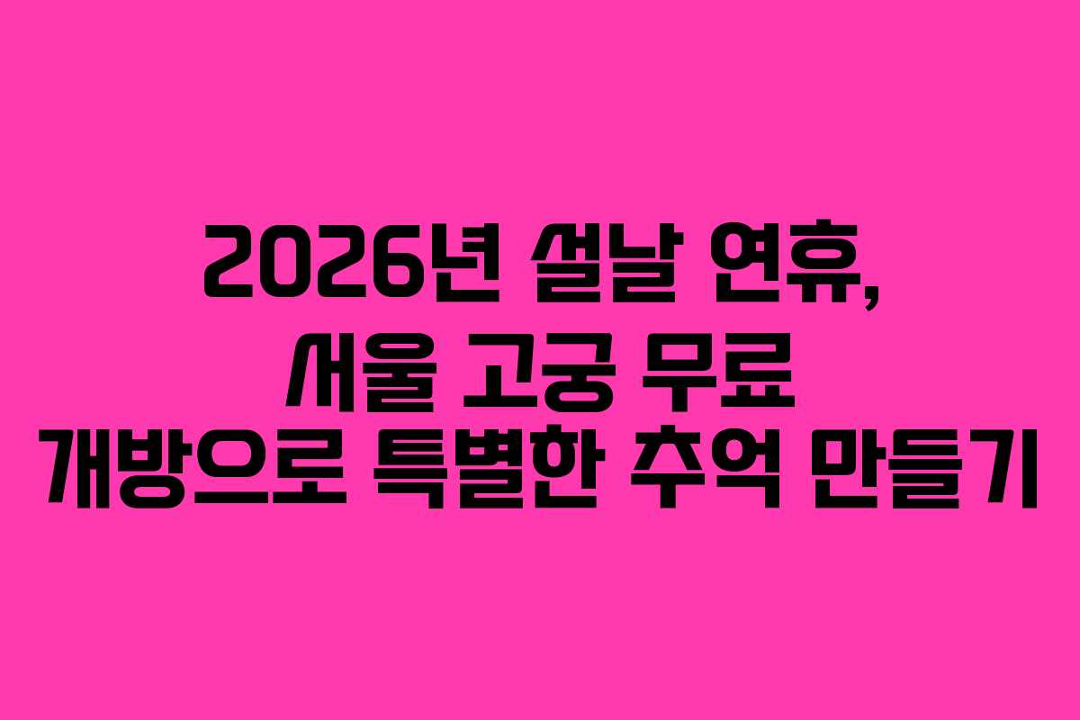 2026년 설날 연휴는 멀리 가지 않고도 도심에서 즐길 수 있는 좋은 기회입니다. 서울의 고궁들은 무료로 개방되며, 많은 이들에게 즐거운 경험이 될 것입니다. 고궁 투어는 여유롭게 명절 분위기를 만끽할 수 있는 좋은 방법입니다.