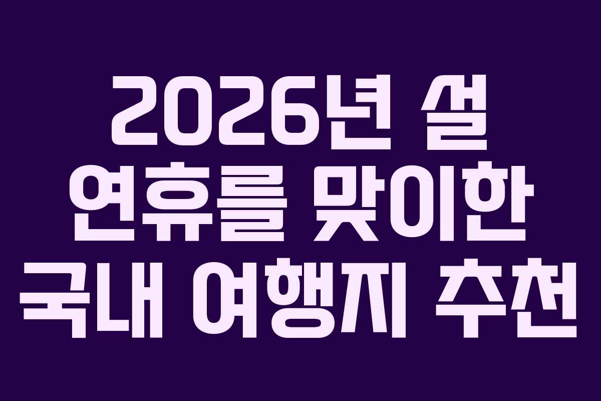 2026년 설 연휴가 다가오고 있습니다. 주말과 대체공휴일이 연결되어 최대 9일의 긴 휴식을 즐길 수 있는 기회입니다. 이 연휴를 이용해 특별한 순간을 만들고 싶다면, 가족과 친구, 연인과 함께 떠날 수 있는 국내 여행지를 미리 준비하는 것이 좋습니다. 이번 글에서는 2026년 설 연휴 기간에 추천할 만한 여행지 5곳을 소개합니다.