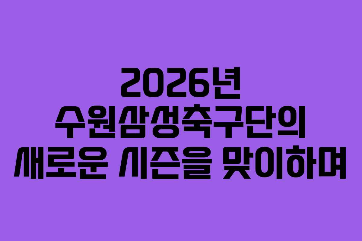 2026년이 시작되면서 많은 축구 팬들이 기다려온 시즌이 드디어 개막하였습니다. 수원삼성축구단은 올해도 많은 관심과 사랑을 받으며 새로운 도전의 길에 나섰습니다. 특히 이정효 감독님의 리더십 아래 팀은 강력한 전력을 갖추고 있어 팬들의 기대감이 큽니다. 이번 시즌의 시작은 단순한 경기를 넘어, 팬들과의 소통과 응원의 장이 될 것입니다.