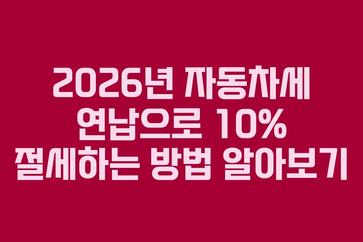 2026년 자동차세 연납으로 10% 절세하는 방법 알아보기