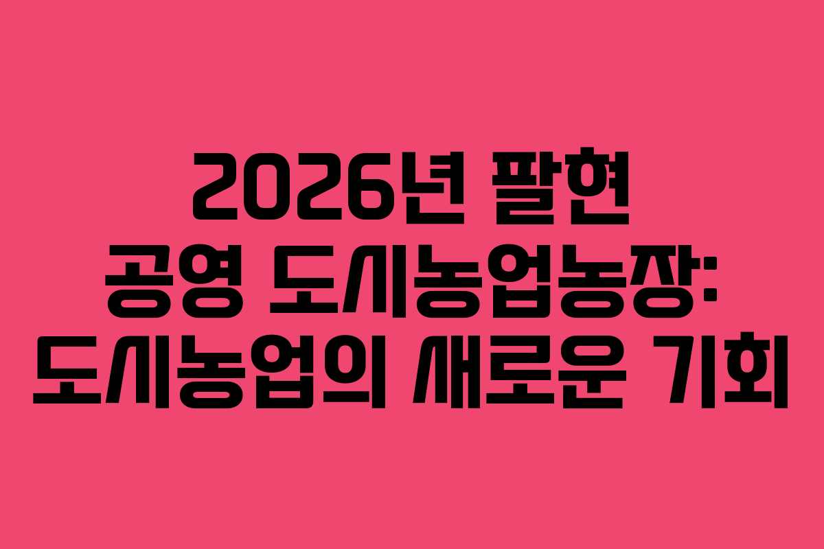 - 2026년 팔현 공영 도시농업농장의 현황과 주민 반응