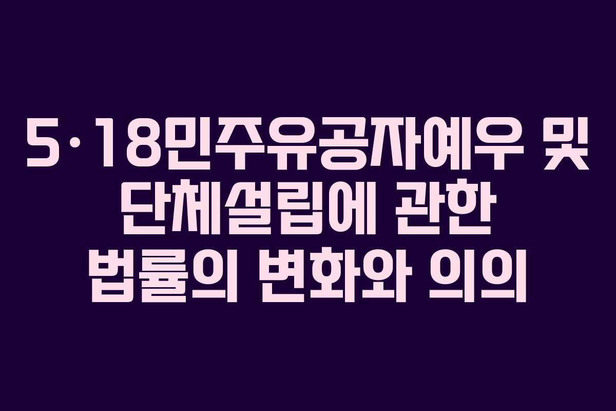 5·18 민주화운동과 관련된 법률은 역사적 의미와 함께 법적 정당성을 확보하기 위해 지속적으로 개정되어 왔습니다. 이러한 변화는 민주화운동의 공로를 인정하고, 관련 단체의 법적 지위를 확립하기 위해 필요했습니다.
