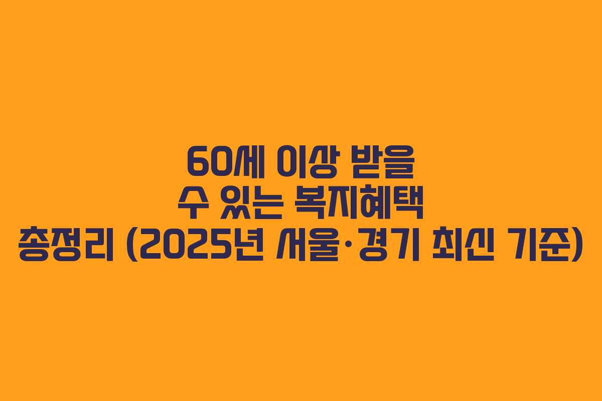 2025년 기준으로 60세 이상이 누릴 수 있는 다양한 복지혜택을 정리했습니다. 서울과 경기도에서 제공하는 복지제도를 한눈에 확인하고, 필요한 정보들을 놓치지 않도록 하세요.