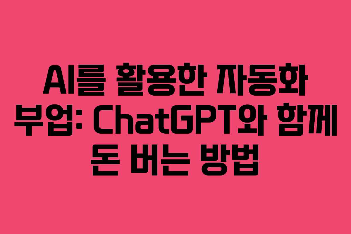 AI를 활용한 자동화 부업: ChatGPT와 함께 돈 버는 방법