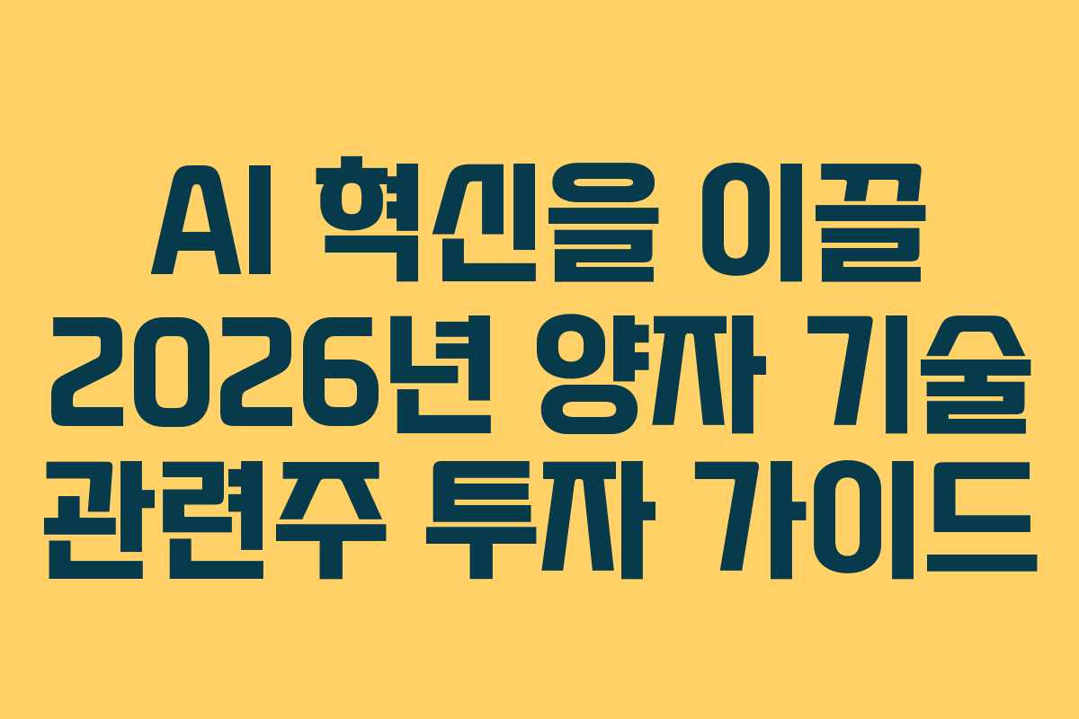 AI 혁신을 이끌 2026년 양자 기술 관련주 투자 가이드