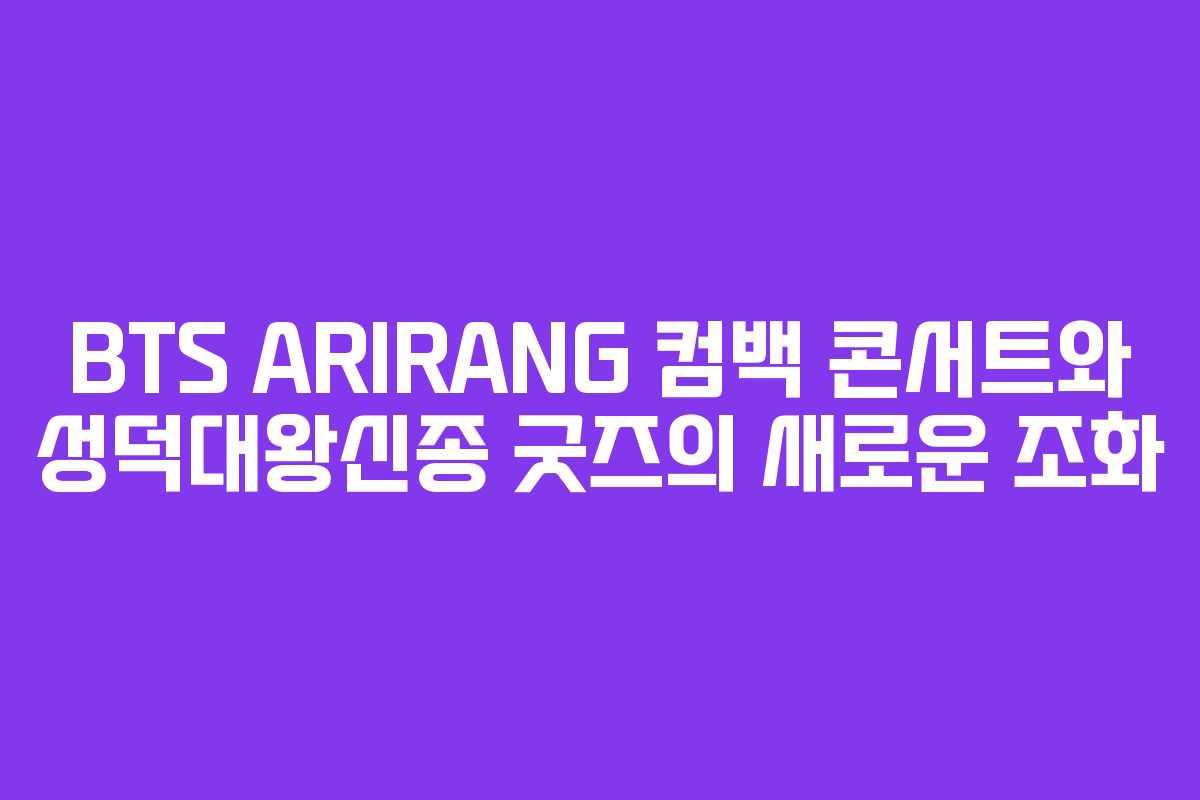 BTS의 ARIRANG 컴백 공연은 단순한 음악적 이벤트를 넘어, 한국 문화의 세계화를 이끄는 중요한 계기가 될 것이다. 성덕대왕신종을 모티브로 한 뮷즈 굿즈는 이러한 흐름을 더욱 부각시키는 중요한 역할을 하며, 팬들에게 깊은 의미를 전달하고 있다. 2026년의 문화적 흐름 속에서 BTS와 한국 전통문화의 조화를 기대해본다.