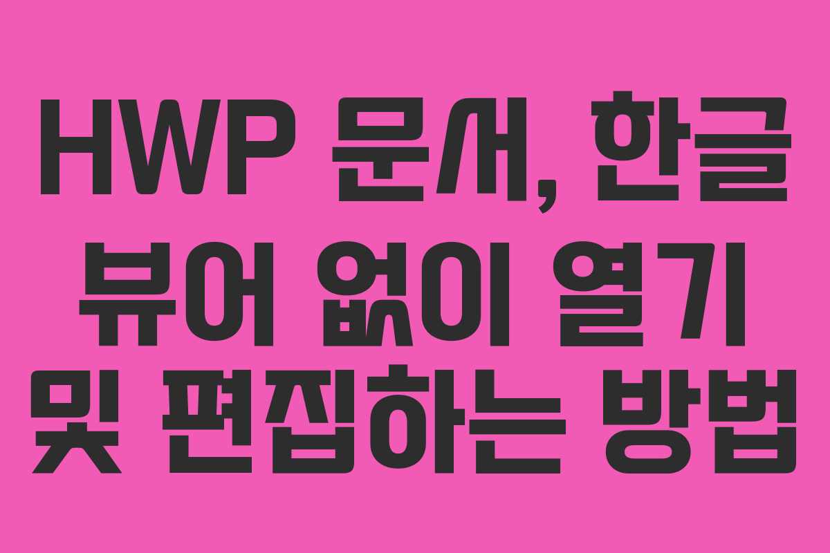 한글 문서를 열기 위해 한글 뷰어를 설치하지 않고도 다양한 방법으로 접근할 수 있습니다. 본 글에서는 한글 프로그램이 설치되어 있지 않은 경우에도 HWP 파일을 열고 편집할 수 있는 방법을 소개합니다.