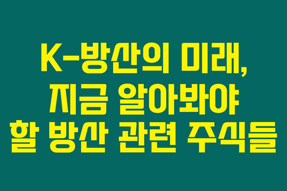 K-방산 관련 주식은 기술력과 정부 지원에 힘입어 성장 가능성이 높기 때문에 매우 유망합니다.