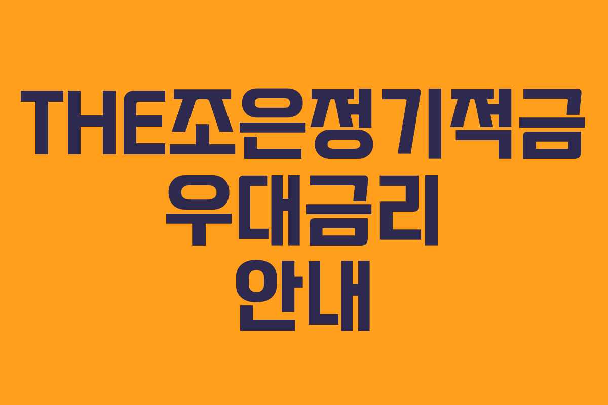 THE조은정기적금은 안정적인 목돈 마련을 위한 유용한 금융 상품입니다. 다양한 우대금리를 통해 더욱 높은 수익을 기대할 수 있으며, 재테크를 처음 시작하는 고객에게 적합한 상품입니다. 이번 글에서는 THE조은정기적금의 특징과 우대금리 조건을 자세히 살펴보겠습니다.
